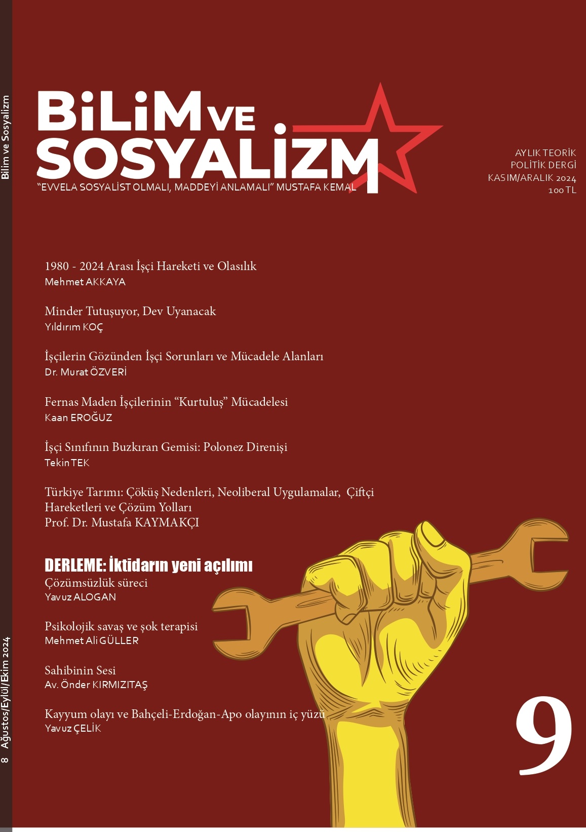 1 Aralık 202425 Haziran 2025 Başlık : Dokuzuncu Sayı Yayın Tarihi : Aralık 2024 Açıklama : Dosya: Yükselen Halk Hareketleri, Derleme: İktidarın Yeni Açılımı Share Post Share Şununla paylaş: Facebook X (Twitter) Daha fazla 9. sayıbilim ve sosyalizm dergisi dokuzuncu sayı Share :